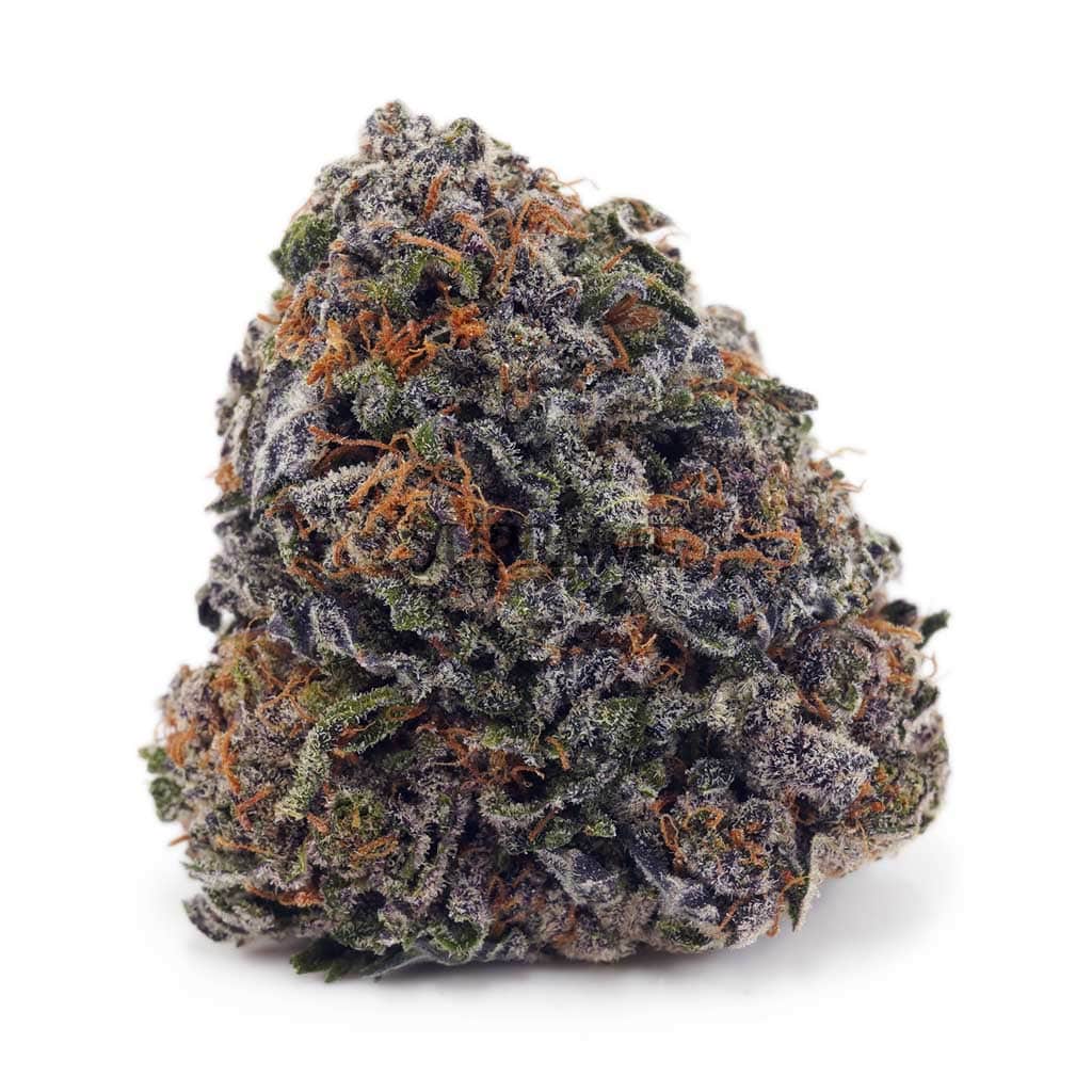 Mango Punch is an indica dominant hybrid strain (70% indica/30% sativa) created through crossing the delicious Mango X another unknown hybrid strain. Although it has never been confirmed officially, many seem to agree that the likely second parent of Mango Punch is, in fact, the beloved Purple Punch strain. Nonetheless, if you’re after a sweet and fruity bud with a soothing nighttime high, you’ve found it with Mango Punch. This bud packs a head-spinning flavor of fresh juicy mangoes accented by sour citrusy pineapple and tropical tree fruits. The aroma is just as vibrant, with a sweet mango overtone accented by citrusy pineapple and sweet tropical fruits. The Mango Punch high will slam into your brain almost as soon as you exhale, launching your mind into a lifted state of focus and motivation. But you’d better hurry – this focus will soon disappear, replaced with pure sleepy sedation that can have you feeling pretty stoned at times. Thanks to these effects and its high 18-24% average THC level, Mango Punch is often chosen to treat a variety of conditions such as arthritis, depression or mood swings, chronic stress or PTSD, headaches or migraines and chronic pain. This bud has super dense and small triangle-shaped emerald green nugs with furry orange hairs, golden undertones and frosty matching crystal trichomes.