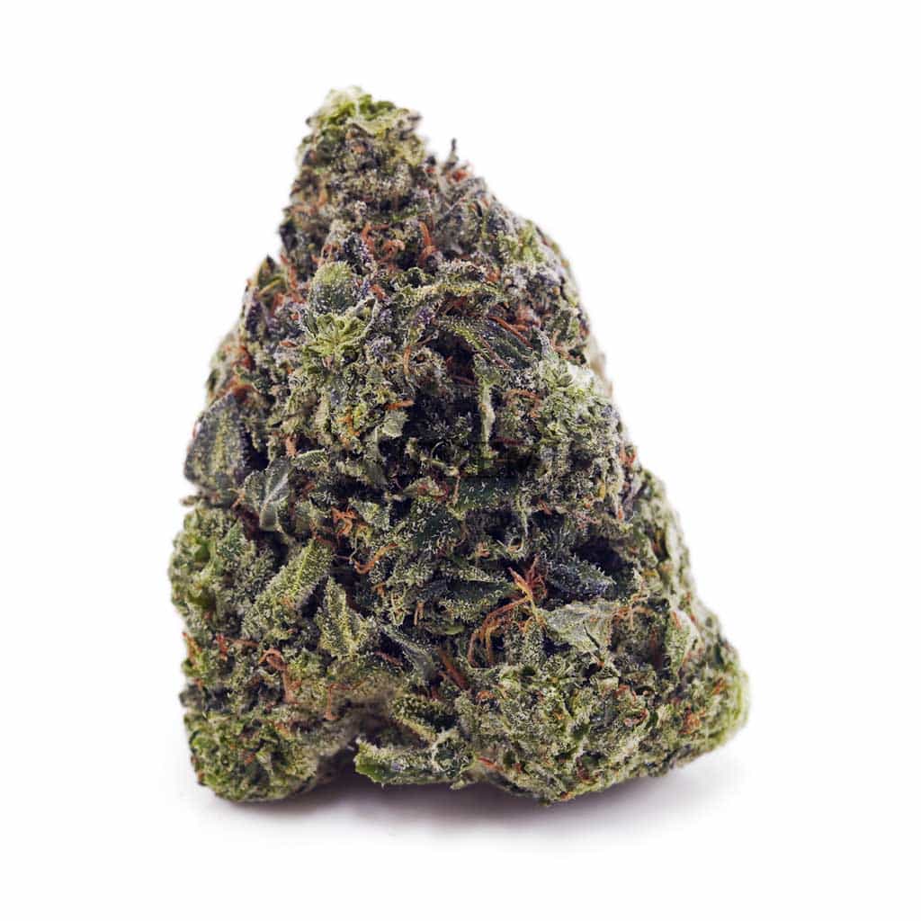 Rockstar, not to be confused with its cousin “Rockstar OG” strains, is a indica dominant hybrid (70% indica/30% sativa) strain created through a cross of the popular Rock Bud X Sensi Star strains. The Rockstar high is characterized by strong-hitting effects powered by a 23% average THC level without the sedation that typically comes with an indica parent. The Rockstar high starts with a cerebral head rush a few minutes after toking that leaves you uplifted and extremely happy with active tendencies and motivation. As this powerful head high builds, you’ll slowly feel a creeping body buzz wash over you that leaves you completely relaxed in every single muscle, leaving you helplessly couch-locked and in a state of pure bliss. Despite these powerful muscle-relaxing effects, Rockstar surprisingly won’t leave you sedated in the least bit. Because of these powerful effects, Rockstar is said to be perfect for treating chronic pain, muscle spasms or tremors, inflammation, and mild to moderate cases of depression. This bud has an aroma of spicy grapey earth with a hint of skunky pungent herbs and a taste of spiced mulled wine with a pungent slightly skunky exhale. Rockstar buds have medium-sized dense and lumpy dark olive green spade-shaped nugs with rich purple undertones, fiery orange hairs, and frosty trichome covered purple leaves.